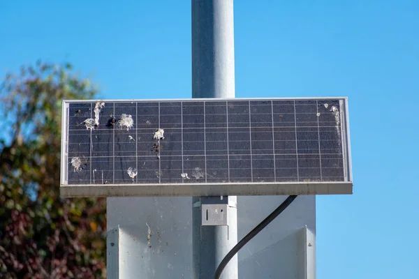 These solar panels are constantly exposed to the elements the residue